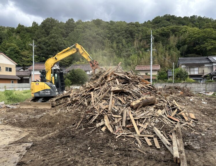 上屋解体、基礎撤去、植木伐採・伐根、庭石撤去
